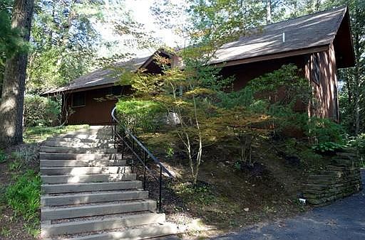 Welcome to your private refuge, a contemporary rustic home, at the end of a cul-de-sac in Echo Hill, coveted for ponds & meadow, Hampshire Athletic Club & free PVTA bus to Amherst Center, Amherst College & UMASS. Custom built, it features a vaulted ceiling & wood stove enclosed in brick, centered in the open floor plan of @1000 SF. Light streams into the combined kitchen/dining/living room through many points, 3 sliders (w/ custom shades) & a clerestory on the east side, all enhancing the brightness of oak floors & cedar wall paneling. Sliders open to deck running the 40 ft. length of the house & overlooking the forest & seasonal brook. Large kitchen area features a butcher block island & small pantry. Enjoy having MBR with large 3/4 bath on main level. Lower level offers 2 more bedrooms, each with slider walk-outs to outdoors, plus another 3/4 bath, storage room, laundry & utility room & access to 2 car garage. An efficient, Buderus, gas boiler heats the home.