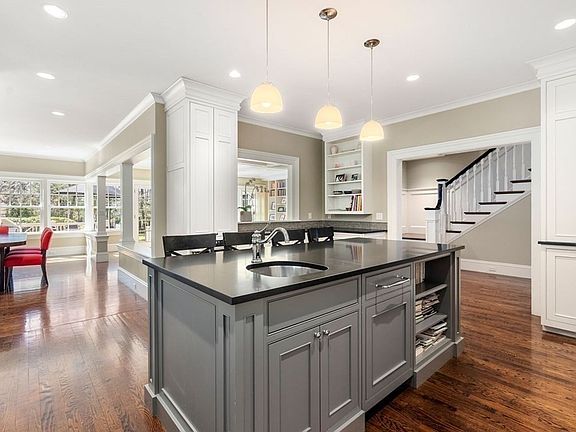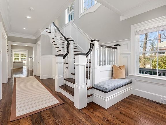 This beautiful architecturally designed home in West Newton Hill with wrap around porch sits on over a half acre of level land. This expansive almost nine thousand square foot home features beautiful millwork throughout and a very thoughtfully designed first floor which opens out to a southwest facing level yard. Large mudroom with side entry or direct from the three car garage. Two staircases bring you to the second floor which has five en-suite bedrooms and large laundry. Off of the second floor is a large conditioned unfinished walk-up space great for storage and other potential uses. Saving the best feature for last is the amazing lower level that can be accessed from the mudroom or its own entry to this amazing 1,500 square foot indoor sports/basketball court with 20-foot ceilings. Ideally located just a minute to the Mass Pike and central to the shops, restaurants and train in West Newton Square and Newtonville. Come see everything this home has to offer!