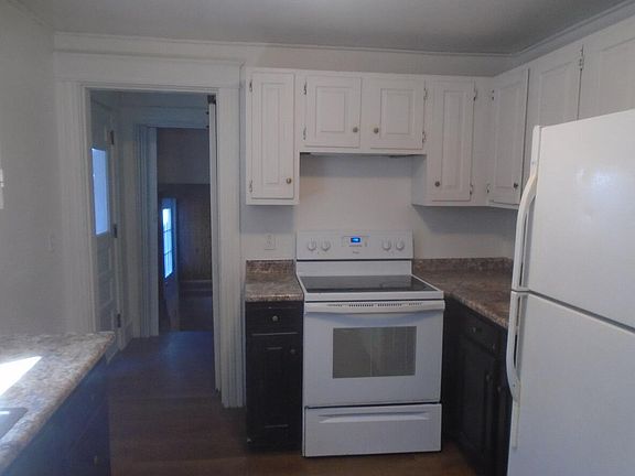 with paved driveway. Fenced back yard is great for the pooch with sun and shade... and you can watch them while sipping your morning coffee on your rear enclosed porch. The kitchen is right around the corner and sports new flooring, an abutting updated half bath and quick basement access.