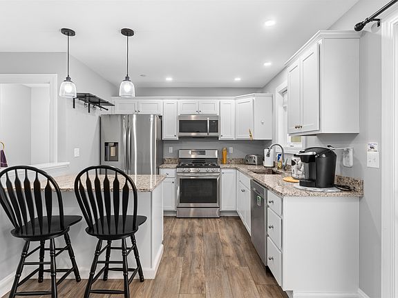 Welcome to Fownes Mill Court on the Cocheco River! This three story condo has two bedrooms and 1.5 bathrooms. Walk up the first flight of stairs from the garage, entry way and utility room with washer dryer hookups to the first floor of living. It opens up to the beautiful eat-in kitchen, dining, half bath and living on the first level. The sliders to the patio are in the dining area that open to a cozy outdoor spot with privacy. Up the second flight of stairs are your spacious bedrooms, with the primary boasting high ceilings and large windows with views of the river. What a beautiful area all overlooking the Cocheco River. Low condo fees include landscaping & plowing. The condo is walking distance to historic downtown Rochester, on a quiet dead end street, close to shopping, wonderful local eateries, the Lakes Region, the Seacoast and all the wonderful things that New Hampshire has to offer. Come take a peek.........at this amazing condo and all that it has to offer!! Will most likely need to be cash or portfolio loan.