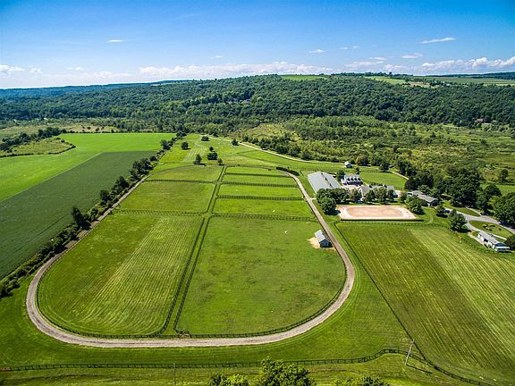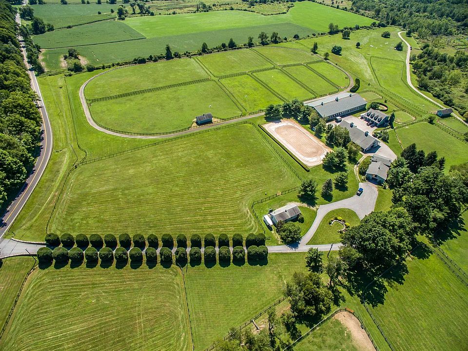 Foxrace Farm. Set in the heart of the Smithfield Valley with over 61 acres of verdant pastures and light woodlands, this fully-equipped farm will impress even the most serious of equestrians. Fittingly introduced by a dramatic arborvitae-lined entry the meticulously maintained facility offers every equestrian amenity surrounded by the idyllic rolling hillsides of the Valley. Anchored by two barns with a total of 17 stalls, each barn includes feed and tack rooms, wash/grooming stalls, an office and multiple equipment storage areas. A 70' X 180' indoor arena with man-made footing, an outdoor dressage arena, a separate equipment building, a cross-country jump course and a total of 10 paddocks add to this immaculate move-in ready facility. Staff facilities include a 3-bay garage with studio apartment with a private deck, a second floor 1-bedroom apartment and a second floor 2-bedroom apartment in the barns. Fully-established, a gathering place for the Hunt and moments to Fitch's Corners , Coole Park and the center of Millbrook, this turn-key operation is ideal for the business driven or leisure seeking equestrian.