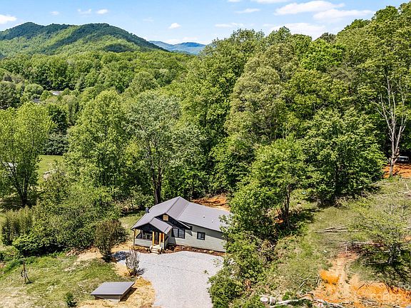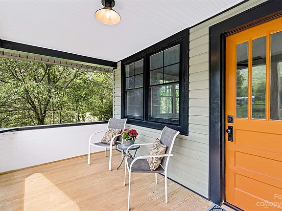 Totally updated modern Bungalow surrounded by majestic mountain views & soothing sounds from the babbling creek that runs on the property. The setting here is very quiet & private for a more relaxed lifestyle, yet you're still very conveniently located to shopping, dining, the interstate & downtown Asheville. So much to love has gone into the renovations to make this home amazing! Features include A spacious open floor plan. Soaring vaulted ceilings. Custom lighting throughout. New windows. Electric fireplace w/a custom black walnut surround & custom mantle. New Kitchen cabinets, quartz countertops & upgraded appliances. Luxury primary ensuite added. Completely new plumbing & electrical. New heat pump. New floor joists throughout. New addition, metal roof, well & deck. All new rafters. Foam insulation in the attic. New Landscaping. Prewired for hot tub outside primary suite. Large garden space beside the creek & so much more! Hurry, this won't last