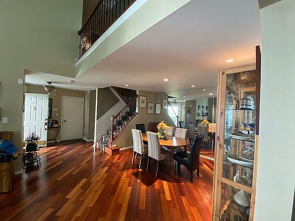 Welcome to this fantastic updated 4 bdrm, 2.5 bath townhome located in desirable Stonebridge. This home offers an open floor plan and many wonderful features. The spacious kitchen has a large custom breakfast bar that supplies additional seating and storage along with SS appliances and pantry. Sliders to private deck. Formal living room and dining room with grand two story floor to ceiling cathedral view. floor powder room. Beautiful moldings and gleaming hardwood floors throughout. A newly designed laundry room with plenty of storage and newer stackable full size washer and dryer. Large master bedroom with vaulted ceiling has a large walk in closet and ensuite bath. Redesigned master bath offers top of the line fixtures, two vanity areas, private toilet and shower with large tiled shower. Full walk out carpeted basement has a semi kitchenette with beautiful cabinets, large closet and storage area for your essentials. Attached two car garage. This home is a must see. Nothing to do but move in. Terrific location for NYC transit options, commuting, schools, conveniences.