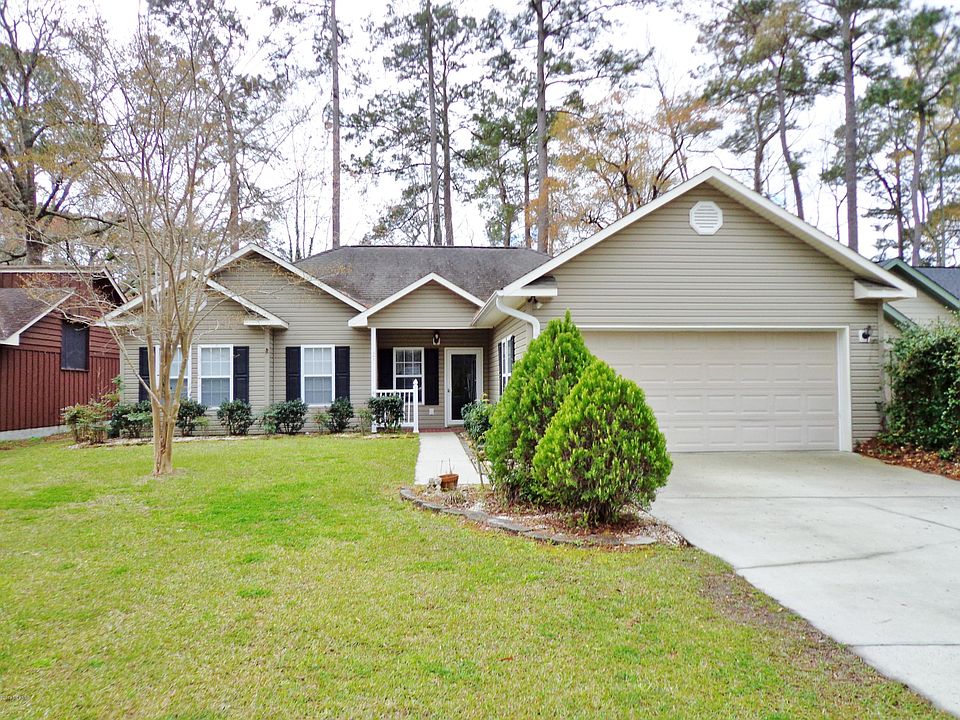 Dancing trees, landscaped grounds, singing birds, located on a cul-de-sac & on the golf course are a fitting introduction to an easy living one-level home that's a delight inside & out. From the foyer with ceramic tile, you'll step into the spacious living room where the brick fireplace takes center stage. Entertain guests here or in the adjacent Carolina Room with windows all around that overlook the #17 fairway. The family cook will appreciate the step-saving kitchen, (with easily maintained ceramic tile floors) ample cupboards & counter space. Cozy up to the eat at bar for a quick snack or take a seat in the adjoining sunlight casual dining area and enjoy a view of the golf course. Click on 'More'.