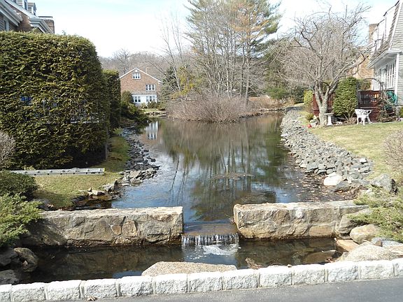 Beautifully Renovated Townhome With Elevator. 2009: All New: Hdwd Floors- Thermal Windows- Baseboards- Mouldings- Interior Doors Thoughout & AC Condenser. 2013: New Hot Water Tank & Garage Door. June 2014: All New SS Appls, Granite Counters, Porcelain Tiling,Cabinet Hardware, SS Sink and Faucet, Ceiling Lights, Custom Frameless Shower Door & Enclosure In 2ND Bath & Restained Deck. There is a Proper Staircase to Unfinished Attic with Skylight, Walk-In Upstairs Laundry Room. Oversized Walk-In Master Closet, Attached Garage. Fireplaces in Living and Master Bedrooms. Elevator To Second Floor (Great for Suitcases When Traveling VS The Stairs!) Replete With Swimming Pool Overlooking Large Pond With Fountain. Relax-Entertain on the Oversized Deck With Water Views Or Cuddle Up In Front of The FP.