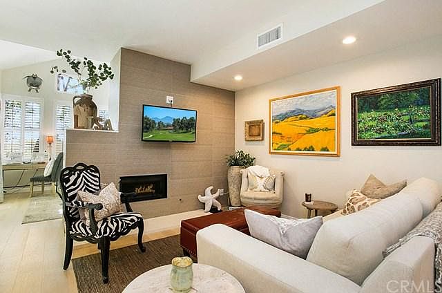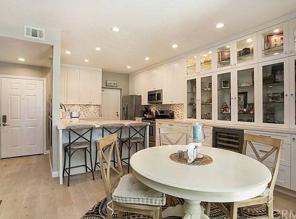 Luxuriously remodeled Condominium. Located in the beautiful neighborhood of Palm Court in prestigious Laguna Niguel . Highly upgraded 1 bedroom + sunroom/den/office with a pull down Queen Size Murphy bed that's perfect for weekend guests. The gourmet kitchen features gorgeous white Quartz counters with a breakfast bar, farm sink, & stainless steel appliances; including a Bosch dishwasher. Other highlights of the kitchen include white shaker style cabinetry with soft close doors and drawers. The dining room showcases a wall of custom built-in cabinets and a wine refrigerator for entertaining . The master bathroom spa has dual sinks and Quartz counters. A beautiful walk-in shower completes this bathroom Oasis. Other features include wood flooring, raised ceilings, an abundance of recessed lighting and a designer fireplace. Enjoy the private patio with stunning westerly sunset views. Meticulously maintained home with the beach only 3.5 miles away and Dana Point Harbor 4 miles south. The HOA amenities include 2 pools/spas, 2 tennis courts and a playground. Excellent schools, parks and shopping nearby.