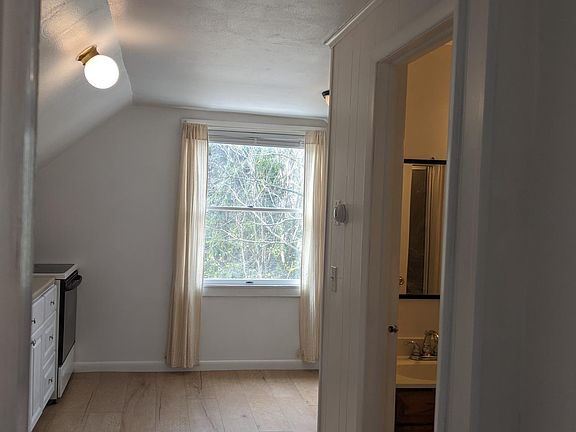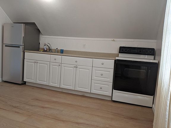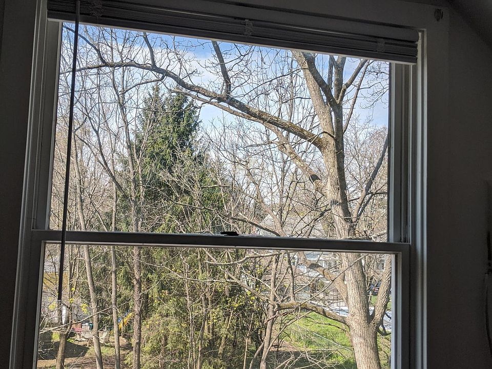 Check out the rear view. You are high in the canopy! This apartment is up two flights of stairs. Owner pays heat, hot water, electric, air conditioning, water, sewer. Lease is month to month. If you are interested in this, please send me a note describing yourself and your situation. I will need references. I will need to see income verification. I take section 8 as well. There is a fiberglass stall shower. Refrigerator is new. Floors are new. Cabinets are recent. there are 3 small closets. the city has designated this apartment for one person only. If you can do two flights of stairs and $775., which is your total cost without cable, this could be for you.