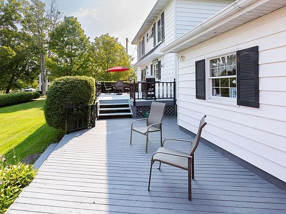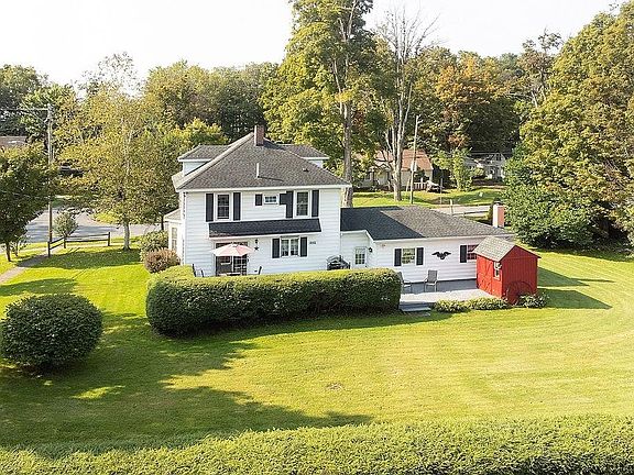 Beautiful, immaculate Colonial home in Bainbridge village. Be prepared to fall in love when you walk through the door. 3 bedrooms and 1 and 1/2 baths, oak hardwood floors. Cozy up to the woodstove in the living room on those cool evenings and enjoy entertaining in the spacious dining room open to the living room. Gorgeous renovated gourmet kitchen with new appliances and abundant cabinets for storage, granite countertops and center island. Dining room features exceptional built in hutch original to house. Chestnut woodwork throughout.Venture upstairs to the find 3 bedrooms and enormous walk in closet. This was originally a small 4th bedroom and could be again easily if need be. Pine hardwood and luxury vinyl tile flooring.. Full Bathroom was totally renovated and features tile walk in shower and bathtub and double sinks. Walk up attic for lots of storage. Outside, enjoy the rocking chair front covered porch or for more privacy, there are multi level decks off the back of the home for all your outdoor entertaining. An attached 2 car garage with workshop, woodstove and paved circular driveway are also part of this amazing property. 2 storage sheds and large level lawn on corner lo