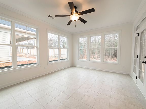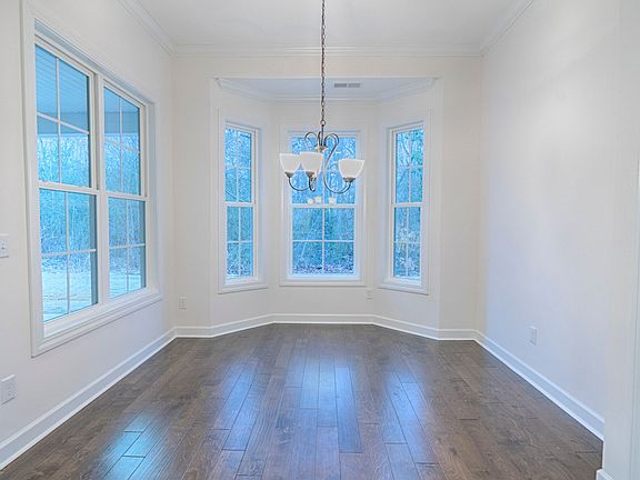 Welcome to the Campbell! Walking up to this beautiful ranch you will notice the spacious three-car garage. Upon opening the front door you will enjoy hand scraped five-inch birch satilla hardwood flooring throughout your main living areas along with grand ten-foot ceilings. The dining room to your left is decked out with the highest levels of molding and a coffered ceiling to boot. The grand kitchen is a vision of beauty with glacier gray cabinets, bianca marina quartz, and a gourmet stainless steel GE double oven appliance package. The owners suite features a beautifully tiled large bathroom, walk-in shower, gorgeous cafe cabinets with snowy white quartz counter tops, and a huge walk-in closet that opens to your laundry room for easy access. You will also enjoy your bright 17x12 sunroom that is full of windows and extremely private 16x12 covered porch that over looks the woods on your low maintenance home site.