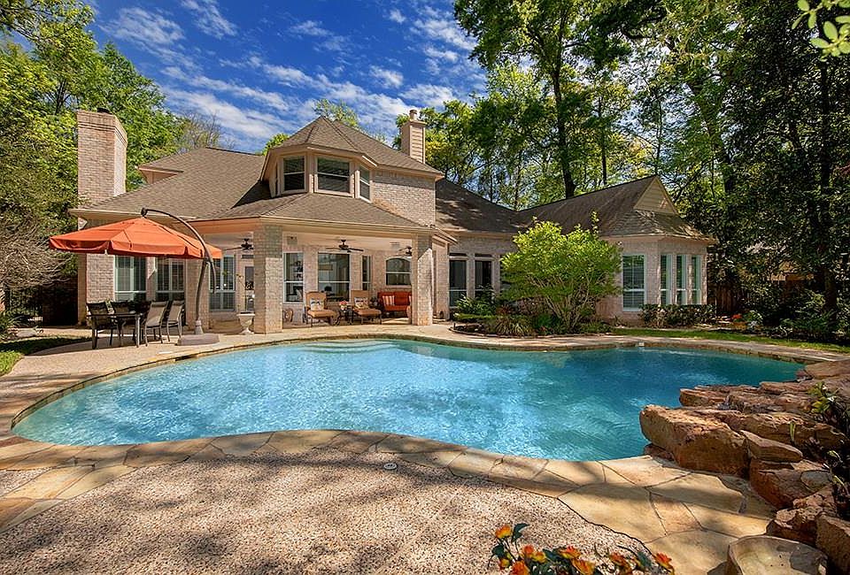 NO FLOODING DURING HARVEY! EXTRAORDINARY CUSTOM HOME situated on over half acre lot in Grogans Point! WELL MAINTAINED 4 bedroom, 3/2 baths, and an oversized 3-car garage. Abundant windows provide wonderful views of the backyard and pool. Balcony in second bedroom provides a perfect spot for morning coffee. Tons of upgrades from ceiling to floor. New hardwood flooring on both attractive staircases, master bedroom, and upstairs. New lighting throughout! Upstairs includes a BONUS ROOM with loads of storage space. Step out to the pool to an exceptional backyard oasis for ultimate serenity! Located only minutes from I-45, Market Street, Hughes Landing, dining, and entertainment. You will fall in love with this home and the lifestyle of Grogans Point! PRIME LOCATION!