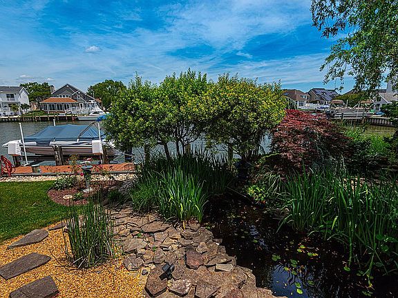 Striking contemporary in Terns Landing. 4Br 3.5 Ba , 2 master bedrooms, 1 on 1st floor. Waterfront with dock and boat lift. extra wide canal that flows into bay. 2 car garage with large circular driveway. Outside shower, water feature with 2 flowing fountains. Large deck with gas outlet for grill. central vacuum, lawn sprinkler system, beautiful landscaping. plenty of storage in finished attic space.