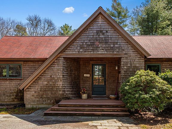Experience a seamless blend of inspired architecture and natural beauty at this magnificent waterfront residence. Set on a wooded lot with direct access to Mares Pond, this stunning architect's home offers privacy and tranquility just minutes from Falmouth's vibrant town center. From the backyard, a private path leads to the water's edge--perfect for swimming, kayaking, or simply enjoying the peaceful surroundings.At the heart of the home, an open-concept living area enjoys an abundance of natural light with soaring ceilings, walls of glass, and rich natural textures. The chef's kitchen features warm finishes and an oversized island, ideal for everyday living and entertaining. A generous dining area and seamless flow to outdoor living spaces make the home equally suited to quiet mornings or spirited gatherings. Four well-appointed bedrooms and two office spaces provide flexibility for family and guests.A detached carriage house with a one-car garage and versatile finished space above completes this one-of-a-kind offering--perfect for use as a guest suite, artist's studio, home office, or yoga retreat. Reflecting a commitment to thoughtful design and environmental harmony, this magnificent residence is a true gem waiting to be enjoyed.
