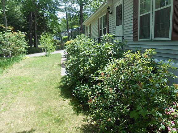 Low maintenance, one level living awaits you in this two bedroom two bath home in a private setting in Birch Hill Estates, a 55+ Co-Op, one of NH premier co-ops. This home has been well maintained has warm wood tone floors throughout. The primary bedroom has a large walk-in closet and attached bath. A 3 seasons room overlooks the private back yard, you never know what will be strolling thru - bear-dear-turkey's, have your camera ready. Large kitchen dining area for all those family dinners and welcoming living room. Second bedroom also has large closet and attached full bath. Located just 5 minutes from downtown Wolfeboro, you have easy access to all the Lakes Region has to offer. Dining and shopping in town or do you want to walk the Rail Trail? Albee Beach is minutes away and if you are looking for Museums, check out the Wright Museum, the NH Boat Museum, and the Libby Museum. On Thursdays, visit the Farmers Market held at The Nick, just down the street. It is the perfect place to call home.