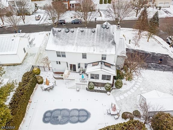 Spectacular, open concept Colonial located in a private neighborhood w/4 sunny BRs, 3.5 BAs, cathedral ceilings & crown molding throughout. Stunning/lrg. eat-in kitchen w/SS appl, granite countertops, open to a cozy fam rm w/ FP, lrg sunroom w/cathedral ceiling, DR, LR, deck off kitchen, overlooks a lovely patio&pool. Powder rm & laundry rm/mud rm on 1st FL. 2 car garage. 2nd FL has a lrg MBR w/walk-in closet, lrg MBR BA w/ tub, double vanity & shower, 3 other BRs & a full BA. Open upper hallway overlooks an enormous sunlit windowed vestibule. Beautiful full finished basement w/full bath, rec room/billiard area/exercise & game areas & lrg private office rm. Ideal for mother/daughter. LL inc. ample storage w/ shelving. Shed w/ electric. Gorgeous landscaping. Close to NJ Transit/Hwy 80/local shops & restaurants.