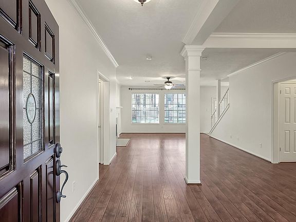 Nestled on a quiet cul-de-sac in the heart of The Woodlands, this beautifully refreshed residence offers a light-filled, well-designed floor plan with timeless appeal. Recently painted throughout, the home features three bedrooms and two and a half baths, with the primary suite thoughtfully located on the main level. A formal dining room welcomes you just off the foyer, while the living room is anchored by a gas fireplace and a striking wall of windows overlooking the backyard. The kitchen and breakfast area flow seamlessly around the staircase and connect to a functional utility room with an additional refrigerator, washer, and dryer included. Upstairs, a generous family or game room is joined by two secondary bedrooms and a full bath with dual sinks. The oversized backyard includes lawn maintenance and offers space to unwind or entertain. Enjoy refined cul-de-sac living close to The Woodlands premier amenities, parks, dining, and shopping. Make this home yours today!