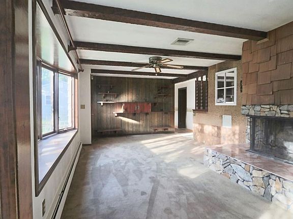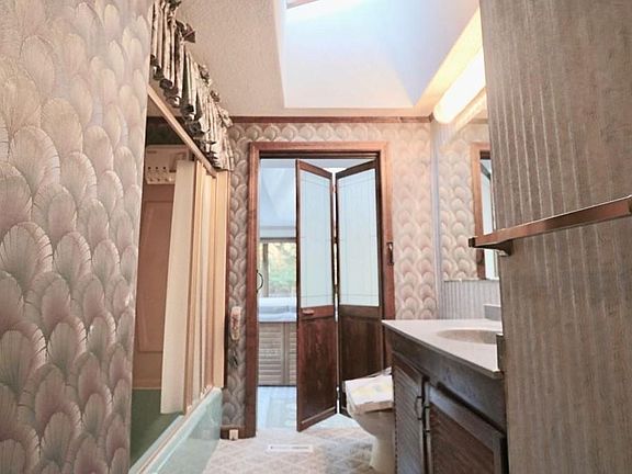 Park like setting on cul de sac. Large four car garage two wide and two deep with full unfinished second floor which can be finished into a large master bedroom suite with balcony. Large wrap around deck. Oil heat with central air. Large family room with sky lights for morning light. Many options to update this original condition home. Cedar closit. Exits to the deck from Master bedroom, family room and three season porch.