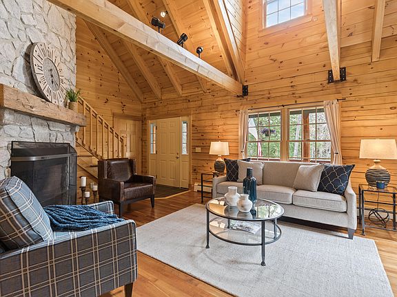 Open houses 4/29 11am-1pm 4/30 2pm-4pm Authentic log home perched at the end of a private drive offers the warm wood interior and privacy you're looking for in your next home! Crafted by the owner and friends, this custom home looks like it was just built. Meticulously maintained exterior and interior. Primary features are the wood cabinets, stainless steel appliances, granite counter top and pantry in the kitchen along with a stately granite stone fireplace (Rumford style for warmth)in living room with exposed beams to loft area. You'll also find a primary bedroom suite with soaking tub and shower, half bath and mudroom on the first level. The loft area is perfect for an office or pull out couch for guests. Spacious sunlit 2nd floor bedroom with 2 closets. The home is heated multiple heat sources: Heat pump (AC in summer), oil boiler and wood fireplace and woodstove in basement. Energy efficient heat pump hot water tank. A second detached 2 car garage is perfect for all your hobbies and toys. Ready for your occupancy. Call today for a private showing!