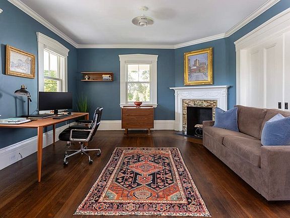 In a convenient Newton Upper Falls location on a gorgeous lot, this beautiful townhouse was extensively renovated in 2019 and is set back on the lot for privacy. It truly lives like a single family home with a private covered porch, deck, fenced yard, entrances and systems including central AC. French doors from the foyer lead to a great study with a fireplace. There are open-concept living and dining rooms with a fireplace & ample space for entertaining. At the back of the home is the fabulous kitchen with an island with a breakfast bar and high-end stainless appliances, plus the family room with French doors to the deck & yard. A powder room completes this level. On the 2nd level is the wonderful primary bedroom suite with vaulted ceilings, a walk-in closet & stylish full bathroom. This level has two more large bedrooms, one with a fireplace, bay of windows & walk-in closet, plus the second full bathroom and laundry room. The private basement has ample storage. Assigned parking area