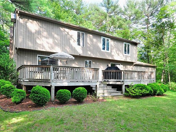 Beautiful Contemporary home features 4 spacious bedrooms, 2.5 updated bathrooms and sprawls over 3,350 square feet and boasts of soaring ceilings skylights, original gleaming hardwood floors on the diagonal, sweeping windows that frame natures artwork, and a private outdoor landscape that lures you to enjoy natures paradise. The architectural design highlights each room allowing the intentions of each space to be used to the fullest. Your substantial kitchen not only offers a cook-top island,a breakfast bar and its own dining area as well.Newer appliances and a plethora of cabinet & counter space add to its versatilityYour kitchen dining area and formal dining room easily expand onto your deck through their own sliders granting you more entertaining space that is a glow LED exterior lighting Your foyer gives way to your impressive living room with vaulted ceilings, stone fireplace and interior balcony. Upstairs, you will find brand new plush carpet that adorns the hallway, stairs & all 4 large bedrooms. Master bedroom offers sanctuary from the hustle and bustle of life with its own bathroom and stunning views. This home also features updated hidden values that include a newer roof, fresh exterior paint, newer well pump, newer wood stove and newer windows This location is a hit easy access to major highways,Bradley International Airport and vast outdoor activities.Nature lovers,enjoy hiking/biking trails.Make this private oasis yours