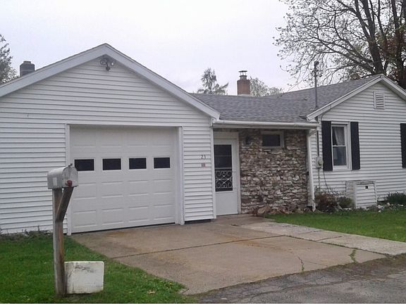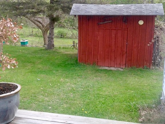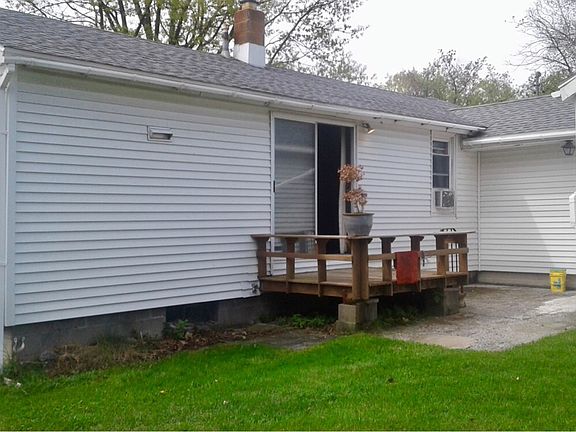 Good condition Ranch style home situated on a 95' X 158' lot as per deed on a quiet dead end street. Home features eat in kitchen with appliances, living room, 2 bedrooms and a bath. New windows throughout, and gas hot air heat. Sliding glass doors off the back lead to a deck and patio, small barn, wood shed, apple trees and black berry bushes. Home also has an attached 1 car garage.