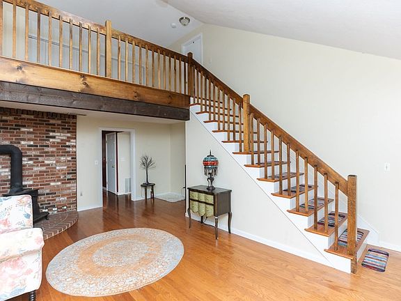 Welcome to Rolling Pines! This cozy 2/3 bedroom bi-level condo offers a spacious living room with a pellet stove and a partially open air stair case. When you walk into the large eat-in kitchen you will find an exposed brick wall and granite counter tops. Two large bedrooms and a full bathroom are also located on this level. As you walk upstairs you will find a loft, a bonus room which is currently being used as a bedroom and another full bath. You will find shiny hardwood floors throughout, a private deck and private storage. Two dedicated parking spots and laundry in unit. All of the perks of single-family living in a condo!