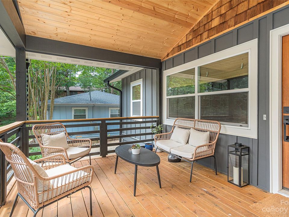 MULTIPLE OFFERS RECEIVED! Beautifully, tastefully, and COMPLETELY remodeled! This one-level living abode is tucked away in highly desirable Haw Creek. Modern, sun-drenched kitchen with lofted ceilings and skylights. Enjoy the outdoor living spaces on the expansive front deck and tiered levels in the backyard with a fire pit. All new kitchen/mudroom/office addition, new plumbing, electrical (200A panel - Bluetooth compatible), windows, doors, grading, roof, floors, and French drain! Quiet street with no thru traffic. Cozy gas heat & central air. Private, fenced-in backyard backs up to the woods. The East Asheville Pool is just down the road and it's a quick, easy drive to downtown Asheville. Less than 1 mile to Masters Park on Maple Drive which leads to the Mountains-to-Sea Trail and the Blue Ridge Parkway!