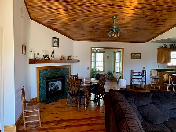 Looking for the special private location with peace and tranquility? This is it!! Home built on Hillside with distant views of sky and woods. Watch the Hawks wheeling in the sky as you drink you r moving coffee on the rocking chair front porch. Interior has beautiful pine floors and Living room is vaulted with pine ceilings. Fireplace for cozy evenings. Split bedroom plan and compact kitchen makes this home special. Sunroom at rear and 2 extra covered patios at rear. Detached Man Cave - She Shed with large open room and full bath. Vinyl siding and metal roof make for easy maintenance and large acreage to garden, hunt or have a sustainable lifestyle. Call today to view and make this your new home!!