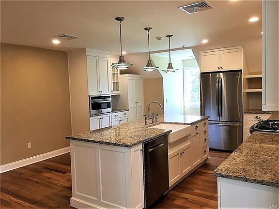 Wilton Penthouse South Unit one of only two high-end luxury apartments in the heart of Wilton Center. Gourmet kitchen featuring gas range, convection wall oven, granite counters and high-end amenities and features. Spacious Wilton Center living, ample storage, showered with natural light and views. Living room with full wet bar, wine fridge, powder room, and French doors to private balcony. Large master bedroom with walk-in closet and luxurious dual vanity bath. Large guest bedroom with private bathroom. Full size Washer/Dryer. White oak floors throughout. Look out over Wilton Center and walk to everything!