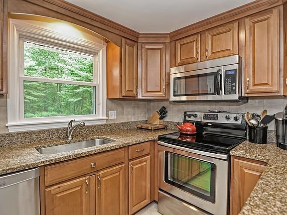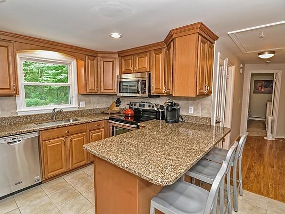 Nicely updated Raised Ranch is ready for the new owners to move in and enjoy the heated inground pool this season. The main level offers a comfortable sized LR with a bay window, hardwood floors, recessed lighting and a pellet stove. The Dining Room has hardwood flooring and a slider to the 3 season porch. The kitchen is updated and offers stainless, granite & a nice sized breakfast counter. The 3 Br's have newer wall to wall carpet and recent paint. The full bath has a tile floor. The lower level is finished and boasts a 2nd pellet stove. The Family Room is currently home to a large and sunny playroom and also offers a half bath, laundry area and access to a two car garage. The Sunroom overlooks the large backyard and inground heated swimming pool complete with a child safe fence and a fully fenced backyard abutting town owned land. Recent updates include Roof (2013), Pool LIner & Filter (2015), Kitchen & Baths (2011), stainless appliances (2013) and interior doors & carpet (2016).
