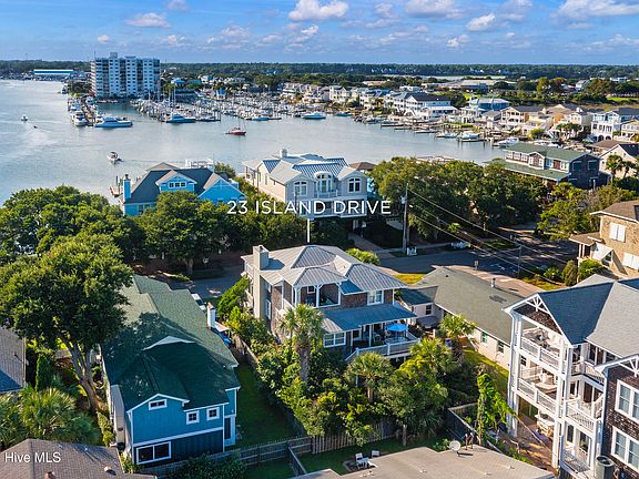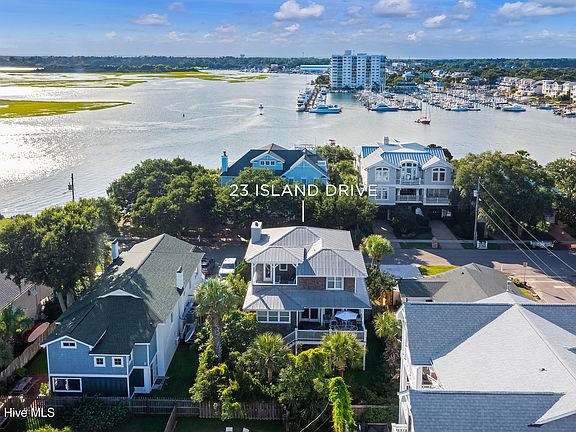 Welcome to 23 Island Drive on South Harbor Island, arguably Wrightsville's most desirable year-round residential neighborhood. This classic coastal home offers the perfect blend of charm, functionality, and location—with perpetual water views and an unmatched community vibe. Inside, Caribbean heart pine floors and abundant natural light set a welcoming warm tone. The open living area boasts great water views from nearly every window overlooking the Island Drive Mini Park. A granite-topped kitchen opens to a partially covered rear porch, ideal for dinning al fresco while enjoying Wrightsville's famed ocean cooled evenings. The primary suite includes dramatic water views and is flanked by two private ensuite porches, offering quiet moments of retreat any time of day. Below, a fully enclosed garage and generous covered carport space provide rare storage and ample parking - both invaluable assets at the beach. Additional features: outside shower, hurricane shutters, cedar shake siding, metal roof, structure elevated on pilings, multiple fig trees on site. South Harbor Island is more than a location; it is a lifestyle. Residents gather at the waterfront park for cookouts, sunset watching, and friendly conversation, making this community one of the most tight knit on the island. Whether you're seeking a full time residence or a coastal getaway with incredible bones - 23 Island Drive is a rare opportunity to own in a truly special place.