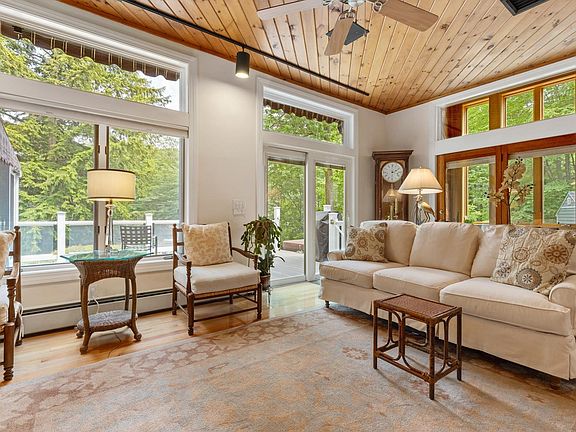 Welcome to Pawtuckaway Lake. This waterfront home offers an idyllic setting for those seeking tranquility and a connection with nature. During the warmer months spend leisurely days enjoying the glistening waters and create unforgettable memories. When winter arrives, Pawtuckaway Lake transforms. You can go skating, snowmobiling or skiing across the snowy lake. This property embraces the spirit of all four seasons, offering endless opportunities for enjoyment. The upper deck is a perfect spot for relaxation, and the hot tub beckons you to unwind.The lower deck, closer to the dock at the water's edge, expands your outdoor living space. What an ideal setting for entertaining guests. The screened porch at the back of the house allows you to appreciate the outdoors while enjoying bug-free evenings. The main living room has a warm wood ceiling and an abundance of natural light. The modern kitchen, complete with granite countertops combines style and function. The main floor also offers a formal dining room, two story sunroom, and family room. Upstairs a serene master bedroom and its beautiful modern bath provides a space where you can unwind. The additional bedrooms are spacious and welcoming for family or guests. Two more rooms on the third floor offer flexible spaces for whatever your needs may be. This home is truly special. Don't miss the opportunity to make this Pawtuckaway Lake retreat your own.