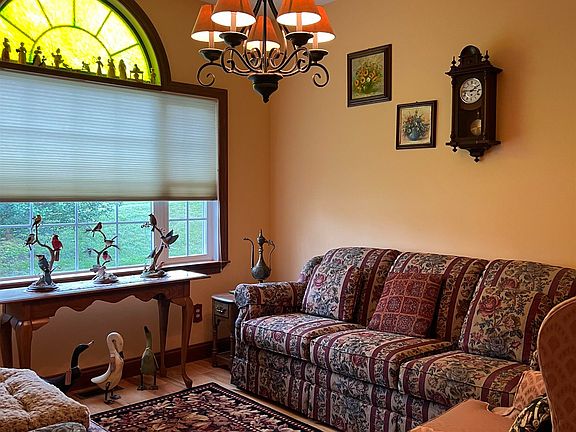 Welcome to your dream home nestled on a sprawling 1.96-acre wooded lot, offering the perfect blend of tranquility and modern comfort. This spacious residence boasts three bedrooms, a partially finished basement, a sunroom, a large kitchen, and solid doors throughout.Generously sized bedrooms provide ample space for relaxation and rest, each adorned with large windows inviting natural light. Owners suit with a private bathroom and walk in shower. Two bedroom are mirror image on with aJjack and Jill bathroom. Large Kitchen: The heart of the home, the kitchen, boasts ample counter space, modern appliances, and abundant storage, catering to both culinary enthusiasts and casual cooks alike. Enhancing both aesthetics and durability, solid doors throughout the home offer privacy and sound insulation. Enjoy the luxury of vast outdoor space, perfect for outdoor activities, gardening, or simply unwinding amidst the natural beauty. The partially finished basement offers versatility, ideal for use as a recreational area, home gym, or additional living space tailored to your needs. Bask in the beauty of nature from the comfort of your own home in the inviting sunroom, providing panoramic views of the lush surroundings throughout the seasons. Basement offers a garage for your lawn equipment and a pellet stove. Conveniently located right off of Rt 75, this home offers easy access to Huntington with a county setting ensuring both convenience and connectivity while preserving the peace and privacy of suburban living.
