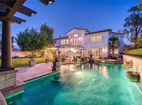 Welcome to 23 Joliet! This home boasts 5 bedrooms + a bonus room, 4.5 bathrooms, an executive office, and an expansive backyard. Situated on a 15,546 sq. ft. lot, this property has had only one homeowner! The home optimizes indoor-outdoor living with its open-concept floor plan. The kitchen and family room open to the backyard, with a saltwater pool & spa, pergola, a built-in Wolf BBQ, several mature fruit trees, and plenty of lawn space. The kitchen features quartzite leather finish countertops, stainless steel appliances, & a walk-in pantry. To complete the main floor, you will find a guest bedroom with en-suite, a powder room, laundry room, an executive office with custom built-ins, and a 4-car garage with ample storage. All main bathrooms have been beautifully updated with honed Carrara marble countertops & floor to ceiling subway tile baths. The wrought iron staircase leads you to the second floor where you will find a spacious Master Suite with a sitting area, marble fireplace, a large walk-in closet, and an en-suite with a stand-alone tub & honed Carrara marble countertop. Continue down the hallway and you will find two additional bedrooms, an office nook with custom built-in cabinetry, a large bonus room with entertainment center, a full bathroom, and the 5th bedroom that is currently being used as a workout room. Additional upgrades include a 5-zone mini-split air conditioner unit, tankless water heater, solid core doors, Tesla charger, solar panels, crown molding, and hardwood floors throughout the home. Located next to the North gate makes this property an ideal location for easy access to schools, dining & shopping. No stone has been left unturned in this incredible home that could be yours!