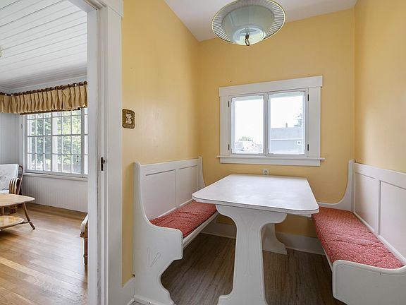 Nostalgia meets modern day in this charming home located in the Kittery Foreside neighborhood! Lovingly maintained throughout the years with vintage elements throughout, the kitchen features original American Central Division steel cabinets with pull outs & divided drawers. Arched doorway opens to the built-in banquette. Bathroom starburst wall panels, wallpaper, and linoleum flooring all in impeccable condition. The current owners have paid homage by adding/updating reclaimed vintage lighting, (electrical upgraded) and solid wood doors with original hardware. You will LOVE the 3 season room during the summer with the sliding windows opened as a screened porch or the sun streaming in on a warm winter day! Snuggle around the wood stove in the family or possible 1st floor primary bedroom/in-law space with bath and separate entrance. Bring your cars and toys to the 3 car garage with tons of parking and/or yard space. Full basement with workshop space plus bunk room that originally housed shipyard workers during war efforts even a map to the shipyard hand drawn on the wooded bed. Set high on a hill just moments to downtown Portsmouth, this lovely home is waiting for its next story to begin.