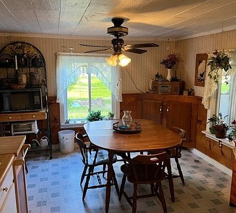 This country home is located just outside the village of Redwood and located in Hammond school district, (20 min. to Ft. Drum, 20 min. to Watertown, under 10 min. to Alex Bay). Home features an open floor plan to include 2 BR/1 BA, open living area, office/den, kitchen with eat-in kitchen with eat-in breakfast dining attached primary heat. There are the 3.8 acres, some wooded and some is cleared. There are 2 storage areas, 1 is attached to house w/outside access and 1 is detached. Home is heated by Kerosene oil tank. Furnace has only 3 yrs. of use on it as it was only used 3 winters. Septic tank and leach field are brand new 06/2023. Septic is a 500 gal. tank. Heating oil is Kerosene.