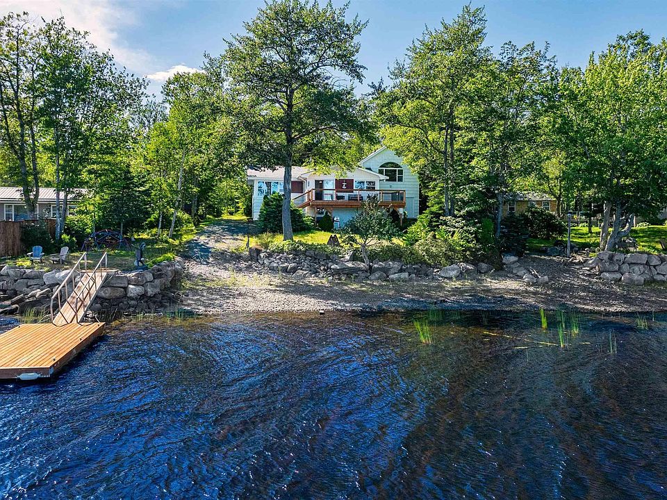 Embrace the quintessential East Coast Lifestyle along the shores of Lake Charlotte where you will find 103 ft of lakefront living on one Nova Scotia's largest freshwater lakes, minutes to stunning white sand Oceanside beaches, surf and interesting seaside communities. You will love the ample sized and very bright main floor kitchen and large open Living Room which offer stunning, uncompromised lake views and full sun throughout the day. Also on the main floor is the second bedroom, a 4 piece bath with jet tub and a den or media room providing flexible space for the movie nights, hobbies, home office or that third bed for guests. The large 20 x 30 primary bedroom is located over the attached double car garage and is your private oasis with a 3 piece ensuite bath and large walk in closet. It's also flooded with natural light and direct views of the water through the large picture window. The unfinished basement has loads of room for further development and features an 8 ft wide, lakeside garage door walkout for easy access and storage for all your summer water toys. This home also boasts a newer 12 x 25 deck directly off the Kitchen and Dining area and a newer aluminum floating dock system, plus your own boat launch along your very own lake frontage. Located minutes to the pristine sands of Clam Harbour Provincial Beach and a mere 35- minutes drive to Dartmouth, this residence is a rare blend of serenity and convenience offering a peaceful sanctuary where everyday life feels like an endless vacation!