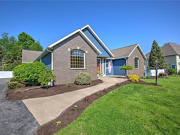 Welcome Home! You will fall in love with this beautiful brick faced Ranch home in desirable South Woods! Hardwood floors throughout most of the house. Updated kitchen with ceramic tile, custom woodcraft cabinets, granite counter tops, center island & new light fixtures. Entertain in a dramatic family room with cathedral ceilings & gas fireplace. Formal dining room & living room provide more rooms for entertaining. Large owners suite with an upgraded master bathroom including double sinks, custom cabinets, walk in tiled shower & whirlpool tub. A newly finished lower level includes 1200 sq ft of more space! Makes a great kids playroom/teen suite/man cave! A fully fenced yard includes an enclosed Gazebo that can be used for a hot tub spa. First floor laundry, 2 car garage, central vacuum & tank less hot water heater! This is the place to call HOME!