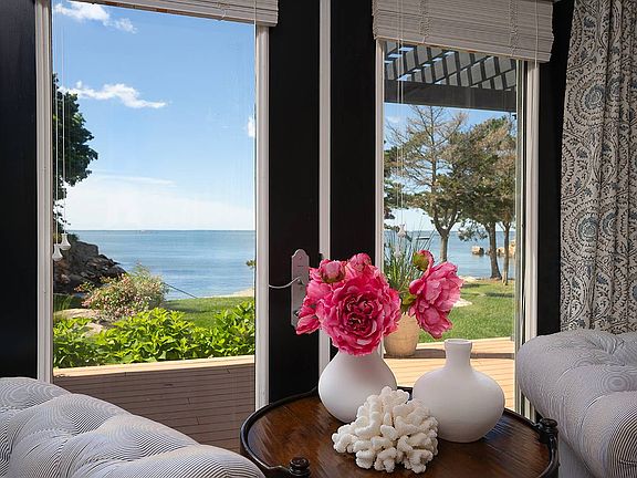 On the shores of Branford Ct sits one of the most envious locations along the New England Coastline. 23 Juniper Point is a beautiful, designed home that is strategically located to take full advantage of awe-inspiring water views and unparalleled privacy. Imagine arriving here on your private seaplane & mooring both your plane & boat just offshore on one of your two private inlet beaches. Once on land you are treated to 1.31 acres of protected outdoor space that merges seamlessly with the homes spacious interior creating an atmosphere that makes living here like an everyday vacation. Well placed windows and custom French doors along with multiple exquisite outdoor sitting venues optimizes the ease of entertaining, volumes of sunshine & breathtaking water views. This is a home that blends the boundaries of work and play. Wonderful workspaces, rooms filled with total comfort and purpose are just a few of the amenities that make living here a clear choice. The kitchen area is anchored by an incredible "Wolf" stove & "Sub Zero" refrigerator along with a center island with multiple seating making this culinary center worthy of the most skilled chef. Interior difference makers like 9-foot coffered ceilings & hand selected wood floors create a wonderful feel of warmth & roominess. The main level includes numerous dining experiences along with two separate living areas, plus a fabulous den. The upper level is private & spacious. Offering optimal relaxation and quiet time. Venturing out beyond the privacy of this premiere location you will find a world of restaurants that are conveniently located nearby, along with trails, biking routes, private golf course and country club are just around the corner. And for the days that you are not conducting your remote zoom meeting with crashing waves in the background you will find that 23 Juniper Point is an easy commute to Boston and NYC.