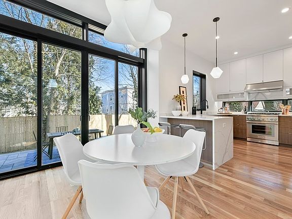 Enjoy sunlit, expansive living spaces and impeccable finishes in this modern, new-construction home with an airtight and fully insulated building envelope. The spacious living room with 10-foot ceilings, on the first floor, provides a cheerful space for living and dining with glass doors leading to the private patio, & landscaped yard. You'll enjoy custom-built walnut cabinets, quartz countertops, and professional kitchen appliances in the open kitchen. Up the modern staircase with generous landing, find a luxurious primary suite featuring a marble en-suite bath and walk-in closet. The top floor offers two more bedrooms with ceilings vaulting to ten feet, each with a private deck, and full bath. A cozy lower level offers a family room, full bath, and laundry. Includes driveway parking. Great location near Harvard and Porter Squares, Fresh Pond, and Huron Village. Walk to restaurants, shops, and recreation. T accessible with a bus stop around the corner.