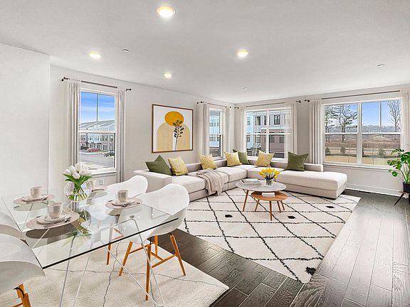 BRAND NEW! Just completed & ready for immediate occupancy! This 3 Bed / 3.5 Bath Pershing model (largest model) end-unit location gets showered with Eastern and Southern sun exposure! Blinds in each room included! Enjoy the walkout FlexRoom with private patio & full bath on the lower level, which doubles as an additional GuestSuite. Upstairs, find the lofted design you've been searching for. A Chef's Kitchen w/ gleaming 42'' white shaker-style cabinets, quartz counters, & OfficeNook for checking mail & paying bills. Extra wide plank hickory hardwood floors on the lower level & main floor living areas. Top floor PrimarySuite w/ Walk-In Closet + 2 Guest BRs. Amenities include dog park, playground, volleyball court, & snow removal. Ideally located 3 mins from Routes 18, 35, 36 & the GSP. Available February 1st, 2023 for annual or multi-year lease. Tenant pays for gas, electric, WiFi, cable. Landlord pays for water/sewer, snow removal, garbage removal (HOA).
