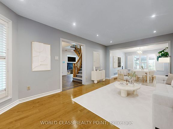 Welcome to 23 Kilbride Drive, a stunning 4+1 bedroom, 4-bath executive home in Whitbys desirable Pringle Creek community. This beautifully premium upgraded residence features a bright open-concept layout with hardwood and Luxury Vinyl floors, oversized windows with California Shutters, a spacious family room with a cozy fireplace, and a chefs kitchen complete with a oversized island, Quartz counters, stainless steel appliances, and custom cabinetry. The elegant dining and living areas are perfect for entertaining. The primary suite offers a spa-inspired ensuite and walk-in closet for a true retreat. The fully finished basement provides additional living space with a bedroom and recreation/game room or even ready for a home style theater experience along with ample storage space. Step outside and discover your private backyard oasis with a saltwater pool, interlock patio, and landscaped gardens designed for relaxation and entertaining and a double garage with ample parking. Perfectly located within walking distance to the best of Elementary, Catholic and High school, beautiful parks, and shopping, this exceptional property blends style, comfort, and convenience in one remarkable package. Move in and begin making memories with your family that will last a lifetime.