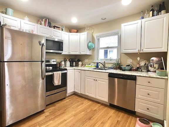 Renovated & Large Top Floor 2 Bed. Driveway Parking Included - Fits 2 Cars. Free Laundry - Dedicated to the Unit. Porch. Sun Porch. Renovated in 2017. Updated Eat in Kitchen. Granite Counters . Stainless Steel Appliances. Updated Bathroom. Huge Living Room & Dining Room Combo. Hardwood Floors. Very Sunny. 4/1/20 Gas Heat . Near the Mass Pike. On the 66 to Harvard. Near the 64 to Central. Mike Swann 6178174304 Keller Williams Realty