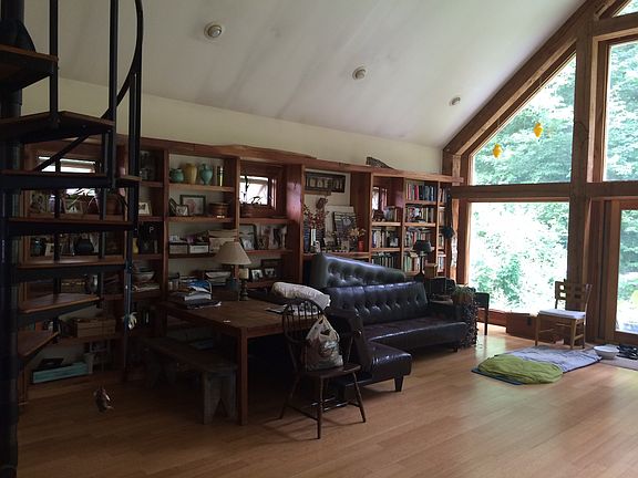Quiet neighborhood on a culdesac with only 8 small homes built during the beginning of the 1900's. This home dovetails with hundreds of acres of a wooded conservation land. Very peaceful and easy to relax in this unpretentious environment. Neighbors are considerate and helpful to one another. This peaceful Monroe brick farmhouse on a quite dead end street is perfect for those who love gardening and exploring. It is connected by a bridge to the "Eco Barn", a true GREEN building with radiant heat, bamboo flooring, not toxic materials and a heat efficient fireplace. It has a sleeping/office loft with a spiral stair case. The bridge and balcony connect the two houses but they are very private from each other, perfect for an aging parent, boomerang kids, air b&b or rental income. A full sized garage and workshop (800 sqft) are below the eco barn. The homes are on half an acre yard (feels like an acre) on the edge of a large woods. It has vegetable, many fruit trees and flower gardens, an in-ground trampoline, a tree house, and a frog pond with a waterfall and an in-ground pool (needs a liner' bump and filter). The farm house is 1800 square feet if you count the finished attic and has a large kitchen, open floor plan, 3 Bedrooms, 2 bathrooms, large basement and finished attic and all near great schools and shops. Brand new $25,000 septic system installed 8 years ago. Relatively new high efficiency heating systems in both homes. Perfect investment property and place to raise a family.