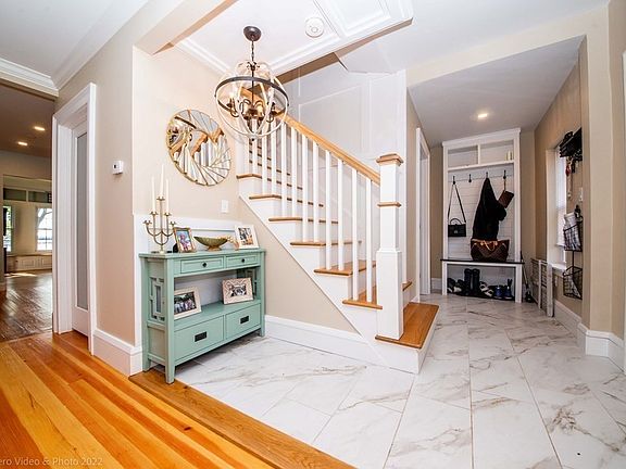 Completely updated, historic colonial built on Poverty Point in Oxford Village. This home is an absolute must see! Every inch of this home has been updated from a brand new heating system, new siding, refinished hardwood floors and updated kitchen and baths. The first floor features a new foyer with tile flooring, new staircase, mudroom and first floor full bath. The foyer opens into a  formal dining room with a functional fireplace with marble finishes. The kitchen has been completely updated with new appliances, cabinets, and wet bar. The kitchen opens into the living room with beautiful harbor views. The second floor offers one bedroom with deck access overlooking the harbor and a master bedroom with master bath and closet. Master bath includes radiant floor heating, soaking tub and new 6 foot tiled shower. Walk up to the third level and find a large fourth bedroom with its own bathroom and more water views. Enjoy this stunning location, overlooking the Fairhaven/New Bedford Harbor!