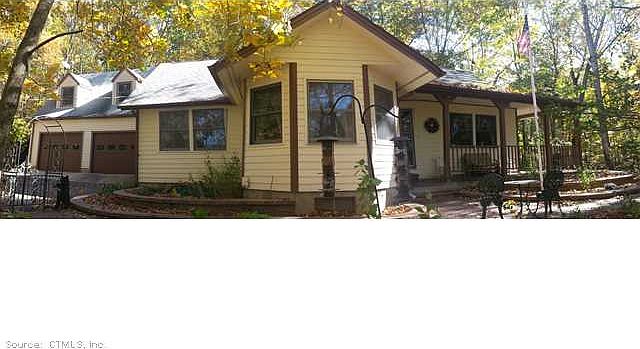 Be Nature's Neighbor! Enjoy the change of seasons in the private hill setting of this one owner lovely three bedroom two bath one-story home with nostalgic wrap around porch and large rear deck for outdoor enjoyment. Sensa natural Stone Granite with sensa stain guard kitchen counters! Master Suite! A short distance to the Lake of Isle golf course and a hop skip and a jump to Foxwoods Resort and Casino for work or play!Many of the amenities worth mentioning are: A spacious 13 x 42 finished lower level family/recreation room that adds over 550 sq. ft. and a lower level laundry area and workshop as well.This special property is only 1 mile to Lake of Isles and the golf course.The detached 24 x 24 two car garage with 2 new doors and openers has exterior side stairs to a spacious bonus room over the garage.Permanent spray on paint siding with lifetime guarantee. Six year young 25 year roof shingles. New granite kitchen countertops that do not require sealing.Jetted tub, central vacuum, newly paved driveway, new gutters, and beautiful stone walls and pavers that define the landscape.