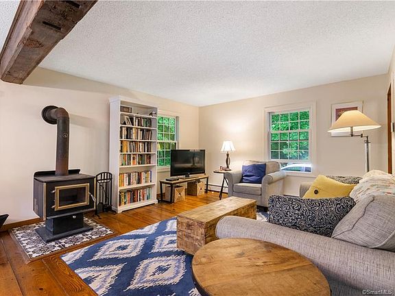 Nestled on a private 2.7 acre lot, this cape is full of charm. Wide board wood floors, wood burning stove, and exposed wood beams create a rustic and cozy feel in the open living spaces. From the living room, walk out to the upper deck to enjoy a meal or take in views of the property. The upstairs office with built-in shelving and large windows makes the perfect at-home work space, can also be used as a guest bedroom or nursery. Detached one car garage has a second floor for all your storage needs and also another bay with a car port that current owners use for their second car. Call to view this home and property!