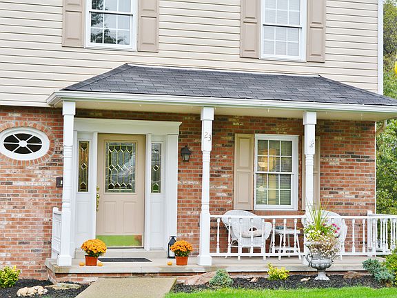 Move right in to this professionally painted move in ready 23 yr. old 4 BR 2.5 bath home situated on lush tree lined cul de sac. Entertain on spacious deck over looking private back yard with covered patio accessed by GR with bar. FR has gas brick fireplace. HW floors through 1st floor and BR's. Master has vaulted ceiling with large walk in closet. There is ample parking in the over sized drive way and 2 car integral garage and 2 car over sized detached garage with large storage room underneath and over head. Close to community park this Light and bright home is immaculately maintained. Detached garage and patio are newer, added in 2011. Quiet cul de sac with private back yard bordering woods.