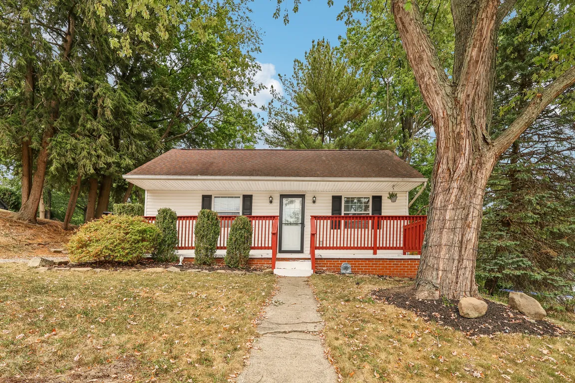 Ranch-style homeFirst floor livingCovered porchPartially finished basementPrivate backyardAmple cabinet spaceEat-in kitchen