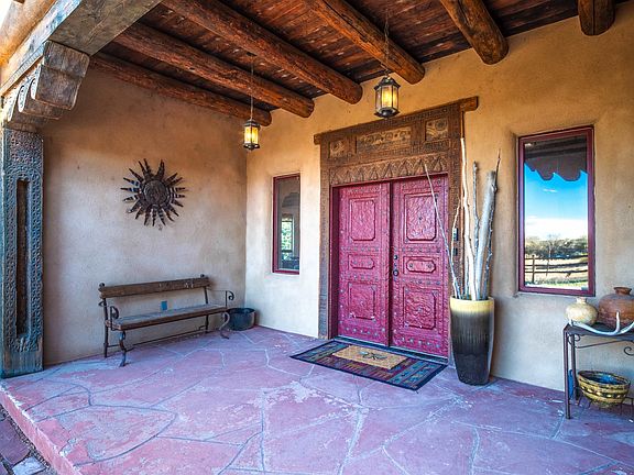 Artistic detailsStunning fireplaceMountain viewsPueblo-style homeUltimate privacyOpen concept designHand carved double doors