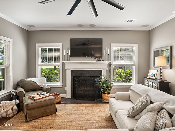 Come see everything this beautiful rancher offers! Nestled in the sought after community of Somerset Point, this single-story living home offers a detached two-car garage with an EV Charger and copious amounts of storage. Relax in your sizeable fully-fenced in backyard, complete with a firepit, extended concrete patio and hot-tub hook-up. The family room greets you as you walk-in with a cozy wood-burning fireplace, oversized ceiling fan and surround sound perfect for entertaining guests or having movie nights at home! Complete with a covered front porch ready for rocking chairs to look out at the beautiful trees in your front yard covered in Spanish Moss, this home is calling for you to start your Lowcountry Living experience!